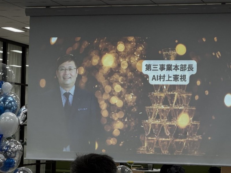 会の冒頭、各事業本部から入社を歓迎する動画を上映しました。事業本部長や先輩社員から、NTTデータGSLでワクワク感を持って働いてもらえるようなメッセージとなっており、AI事業本部長によるメッセージもありました。
